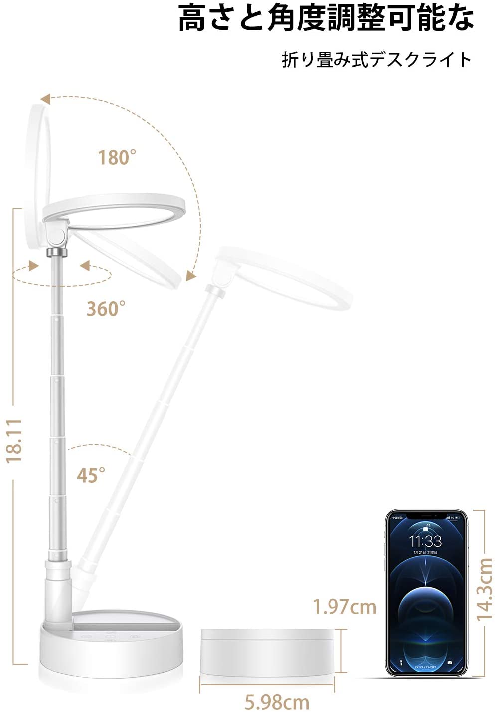 クライト LEDライト コードレス 【折り畳み式 & USB充電式】 電気スタンド 目に優しい 3色モード 5段階/タッチセンサー調光