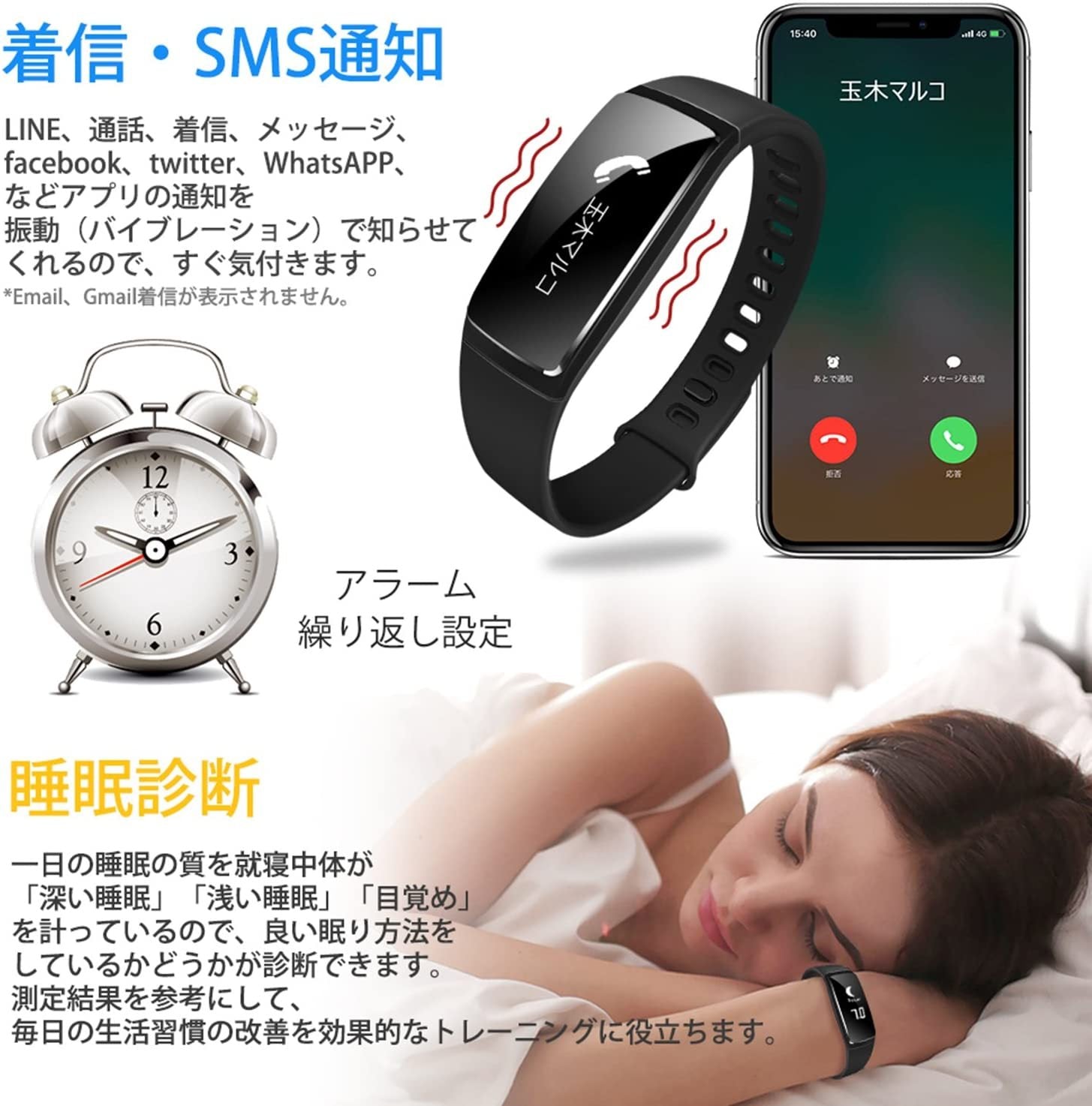 【着信・SMS通知】着信、メッセージ、LINEなどのアプリの通知などを振動(バイブレーション)で知らせてくれるので、すぐ気付きます。また、会議中や電車の中など、電話にすぐに出られない時などメインボタンを3秒長押して簡単に拒否できます。※Email、Gmailの着信が表示されません。