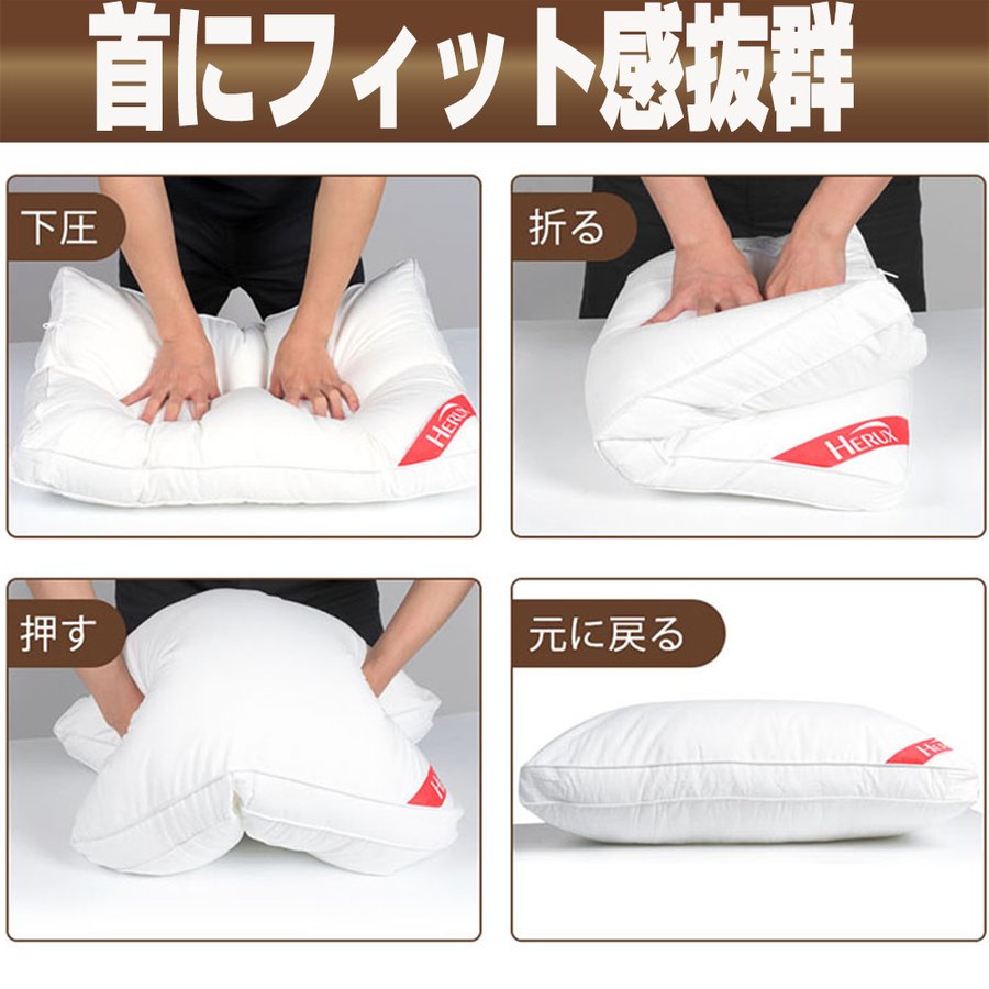 羽毛が入った枕のように、ふわっふわのソフトな寝心地。柔らかいのに適度な弾力があるので、しっかりと頭を支え、寝姿勢をサポートします。