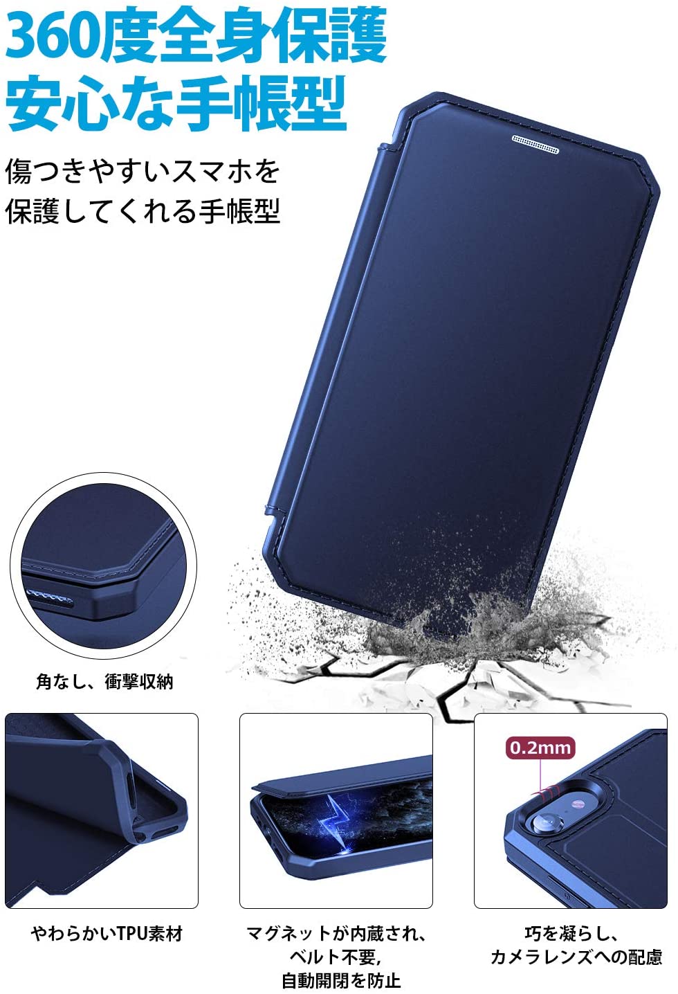 【高品質素材】iPhone SE 第2世代ケース 手帳型(2020新型)は最高級PUレザーとTPUプラスチックを採用して、肌のような手触り感で埃が付きにくく、長く使用することができます。放熱性が良く、傷や埃を防ぐことができます。高級感のある仕様でシンプルながら周りと差がつきます。
