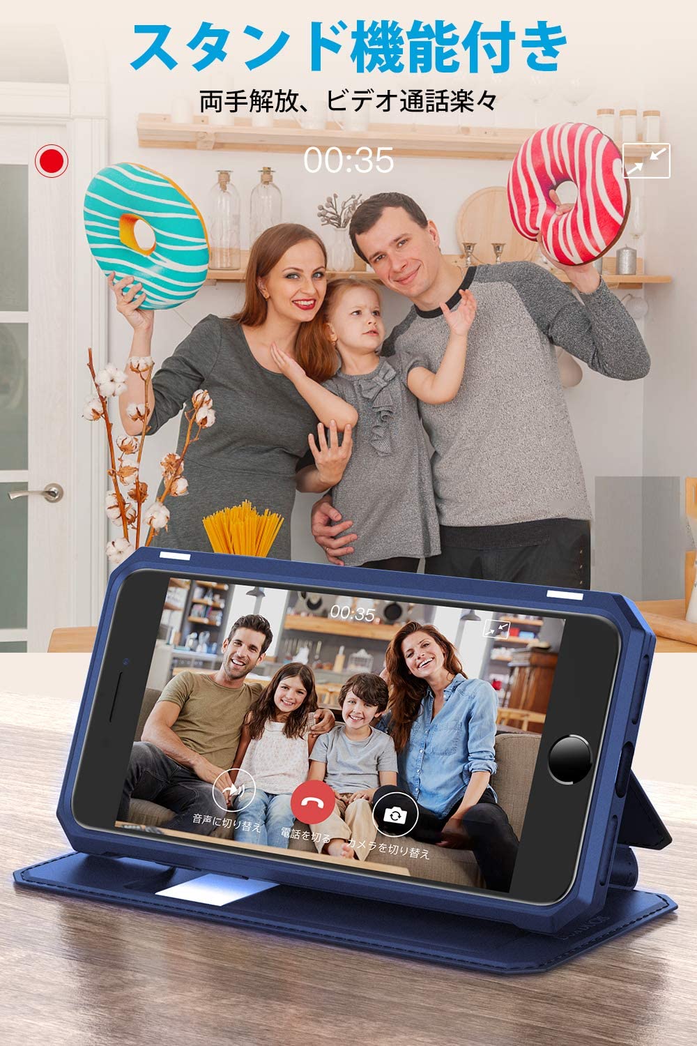 【マグネット搭載】マグネットが内蔵されているので、ベルトがなくても蓋がピタッと閉まります。手帳型 ケースに装着したままで、充電とイヤホン挿すなど全ての操作が自由に使えます。