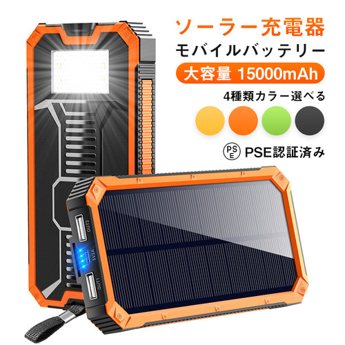 CDB-TYN ソーラー充電器 モバイルバッテリー 大容量 15000mAh 軽量 太陽能 充電器 薄型 2台同時充電